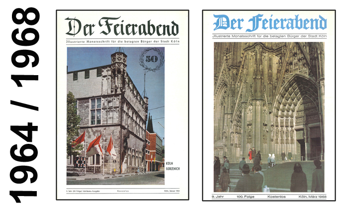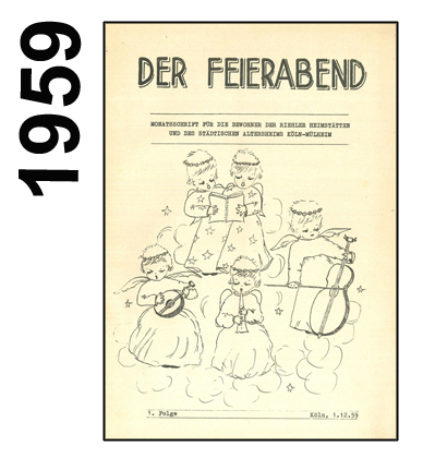 Die Geschichte von KölnerLeben beginnt besinnlich - betulich: Das Titelblatt der ersten Ausgabe zeigte handgezeichnete Engelchen mit Laute, Flöte, Cello und Gesangbuch in den Händen. Am 1. Dezember 1959 erschienen 1.500 Exemplare, zu jener Zeit noch unter dem Titel „Der Feierabend“. Die Publikation, auf einfachem Papier gedruckt und mit Schreibmaschine geschrieben, war konzipiert als „Monatsschrift für die Bewohner der Riehler Heimstätten und des Städtischen Altenheims Köln-Mül heim“.
