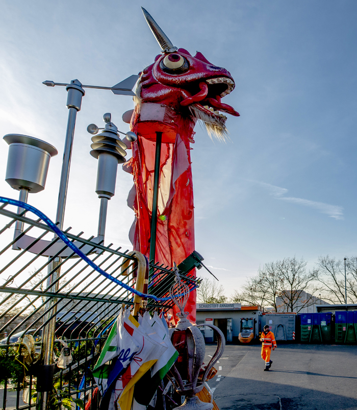 Die AWB-Mitarbeiter verwerten Abfallmanchmal auch als Dekoration. Foto: Thilo Schmülgen