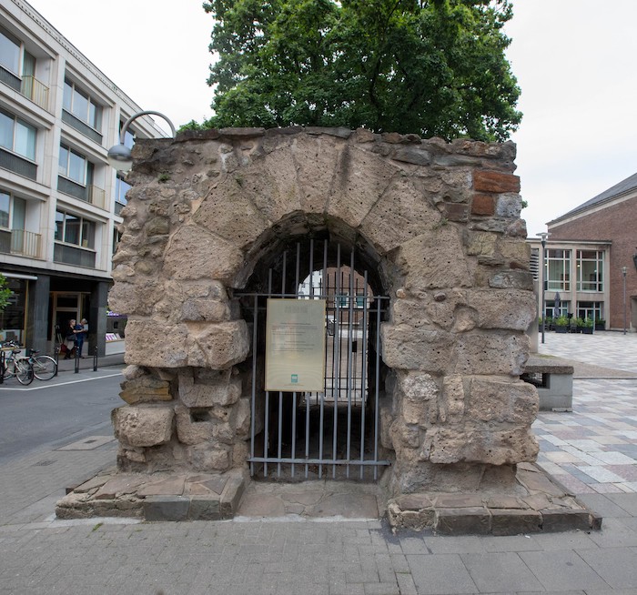 „Man muss sich das so vorstellen, dass in den Straßen Kanäle das Regen-, aber auch das Brauchwasser in Hauptsammler ableiteten“, so Grüßinger. Die verliefen abschüssig von Westen nach Osten in Richtung Rhein. Vier kennt man heute. Sie befanden sich unter der Augustinerstraße, Obenmarspforten, der Großen Budengasse und der sogenannten Hafenstraße. Auf dem Theo-Burauen-Platz steht ein Teil des Hauptsammlers, der unter der Großen Budengasse verlief.