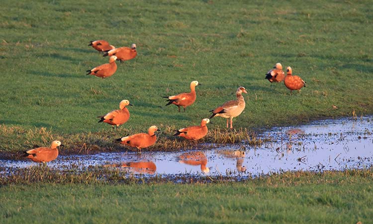 Prächtig anzuschauen sind die Rostgänse. Sie treten paarweise oder in kleinen Gruppen auf. Foto: www.schwark-foto.de