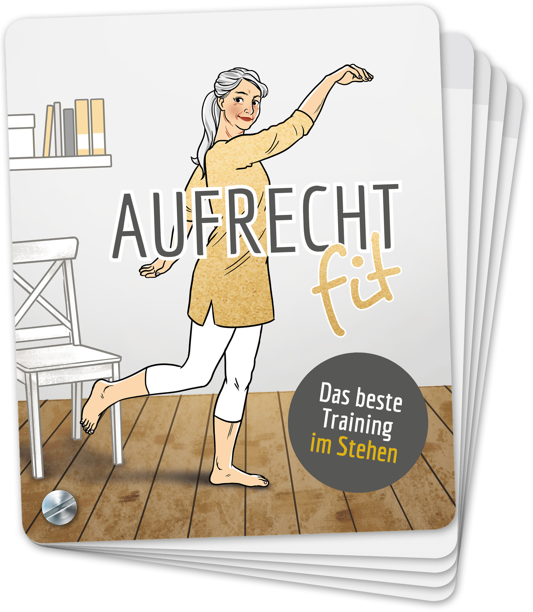 Weitere Übungen finden Sie in den Buchkarten „Aufrecht fit“ von Bernhard Koch. Erhältlich für 13,95 Euro plus Versand unter Tel. 0221 / 534 76 42 oder www.sportartverlag.de