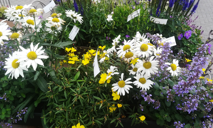 Die Mitarbeiter der Alexianer Klostergärtnerei stellen liebevolle Arrangements für Pflanzkübel zusammen. Die allermeisten sind bekannte Blumen und Kräuter, in ungewöhnlicher Kombination. Ein Dufterlebnis, das an eine wilde Blumenwiese erinnert. Foto: Antje Schlenker-Kortum
