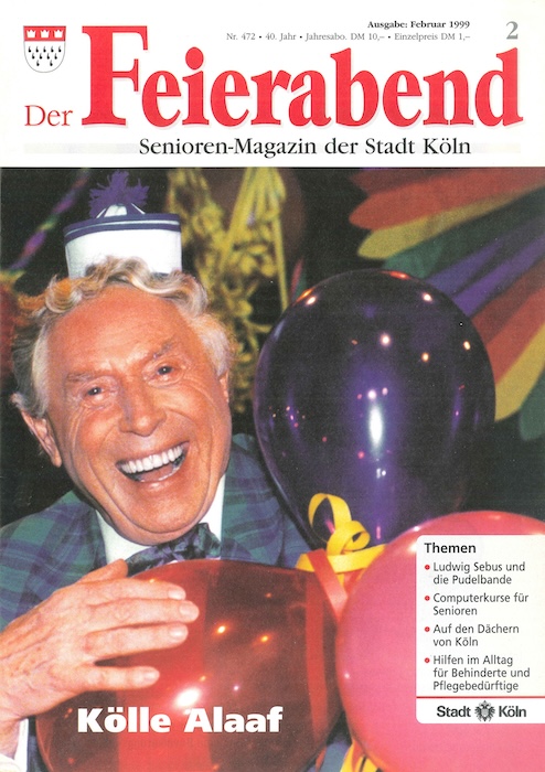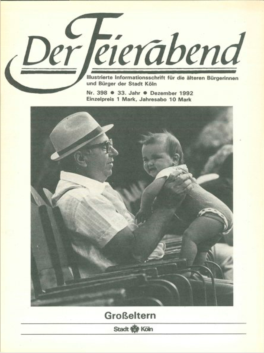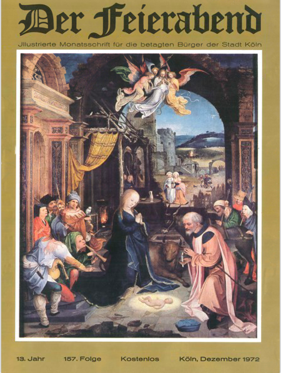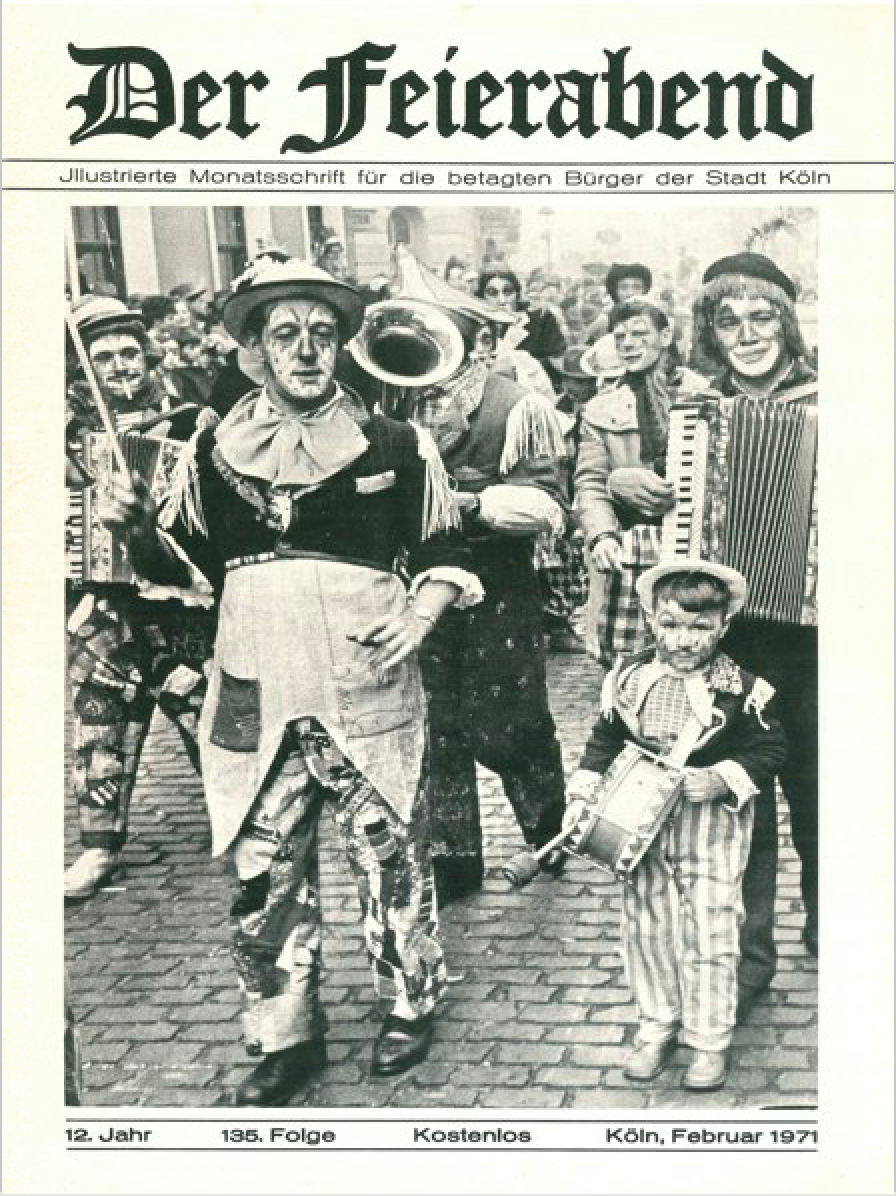 Die Geschichte von KölnerLeben beginnt besinnlich-betulich: Das Titelblatt der ersten Ausgabe zeigte handgezeichnete Engelchen mit Laute, Flöte, Cello und Gesangbuch in den Händen. Am 1. Dezember 1959 erschienen 1.500 Exemplare, zu jener Zeit noch unter dem Titel „Der Feierabend“. Die Publikation, auf einfachem Papier gedruckt und mit Schreibmaschine geschrieben, war konzipiert als „Monatsschrift für die Bewohner der Riehler Heimstätten und des Städtischen Altenheims Köln-Mülheim“. Für die „lieben alten Damen und Herren“ gab es allerlei Geschichtchen und Gedichte – in teils ziemlich kleiner Schrift – zu lesen. „Tröstender Begleiter in schlechten Zeiten“ sollte das Heft sein – so sahen es Redaktion und Herausgeberin, die beim Oberstadtdirektor der Stadt Köln angesiedelte Sozialverwaltung.
