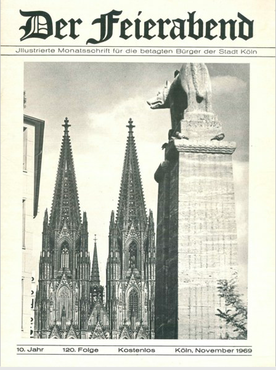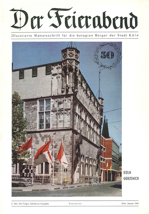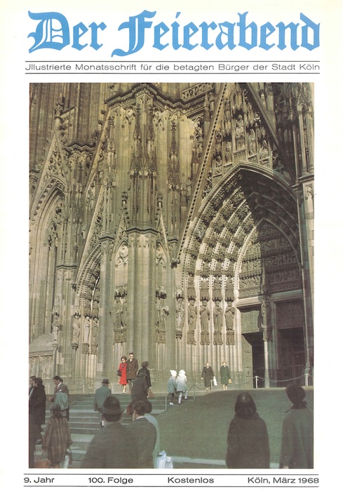 Das Leben der „betagten Bürger der Stadt Köln“, wie es jetzt im Untertitel hieß, bestand damals offenbar vor allem aus Mühsal, Leiden und Untätigkeit. In den Heimen der 1950er und 1960er Jahre, so scheint es, warteten die Bewohner nur noch auf den endgültigen „Feierabend“ – bis dahin setzte die Redaktion ihnen monatlich „Ernstes und Heiteres, Besinnliches und Vergnügliches“ zur Zerstreuung vor. In den 1960er Jahren hatte das Heft Leser in aller Welt: In der 100. „Feierabend“-Ausgabe im März 1968 wurde betont, dass das Magazin für viele im Ausland lebende Kölner eine „Brücke zur Heimat“ sei. Es begrüßte Leser nicht nur in Europa, sondern in der ganzen Welt.