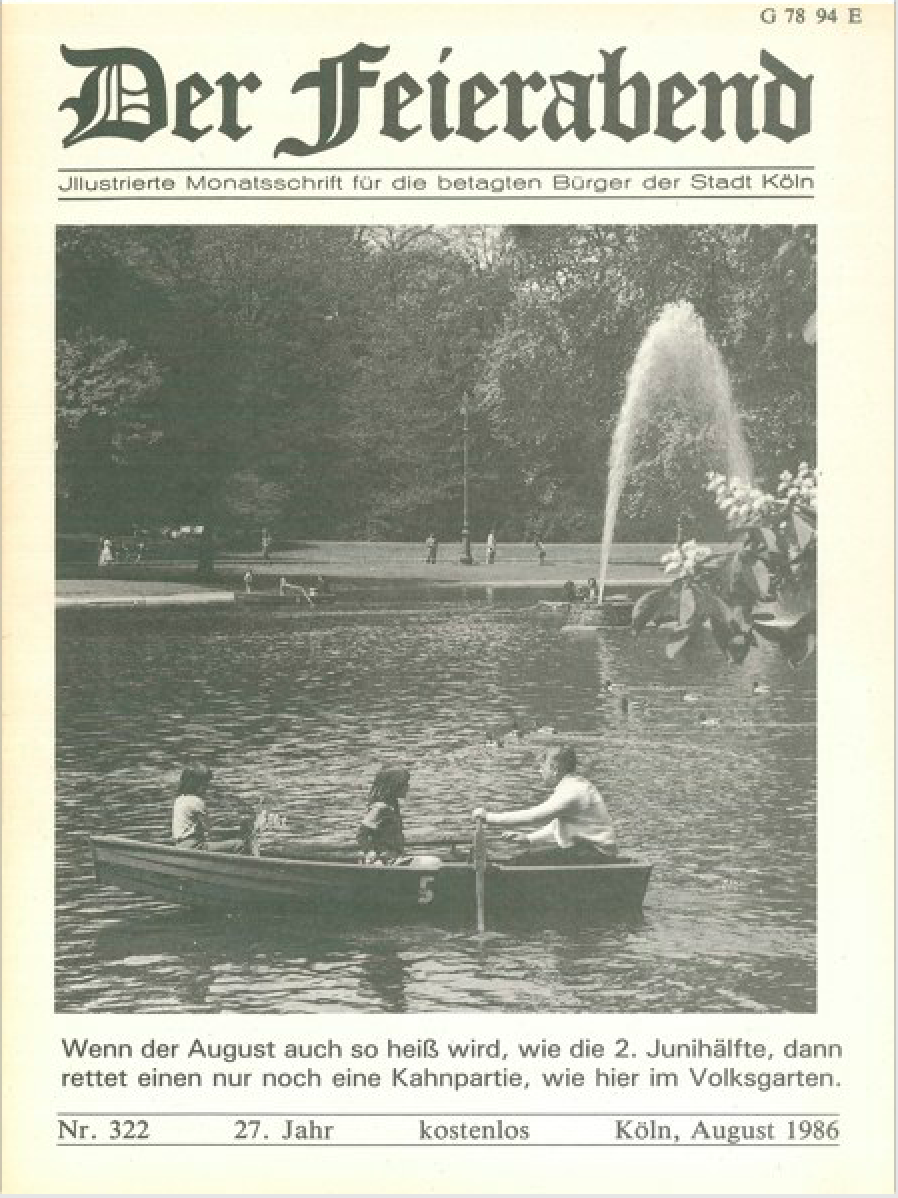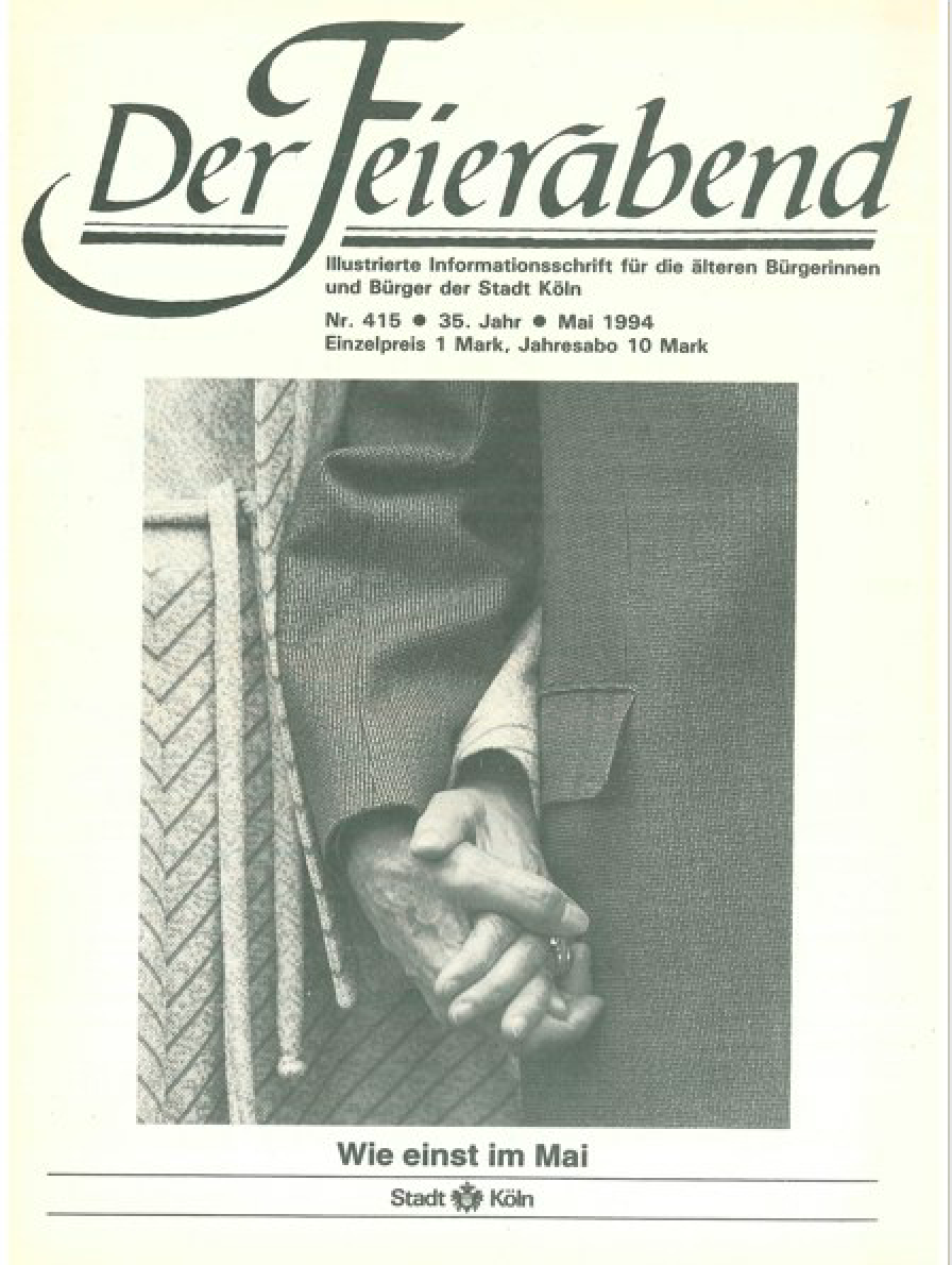 Spätestens Ende der 1980er Jahre berichtete die Redaktion häufiger im Reportagestil über die Lebens- umstände älterer Menschen, etwa im Seniorenhaus St. Theodor in Vingst. Eigene kleine Wohnungen und „Service-Räume“ mit Arztsprechstunden, Schwimm- becken und Gymnastikangeboten zeugen davon, dass sich moderne Einrichtungen zunehmend als Dienstleister verstanden – nicht länger als Einrichtungen, die die „Betagten“ bis zu ihrem Tod verwalten. Der „Feierabend“, mittlerweile Teil eines übergeordneten Seniorenberatungskonzepts der Stadt, stärkte seine Ratgeber-Themen und berichtete etwa über Fahrtüchtigkeit im Alter, über Pflanzenpflege, Kriminalität und Gesundheitsthemen, intensiv auch über die Seniorenwahl der Stadt Köln 1986. Die „Alten“ galten mehr und mehr als soziale Gruppe, die ihr Leben selbstbestimmt und auch politisch gestalten möchte.