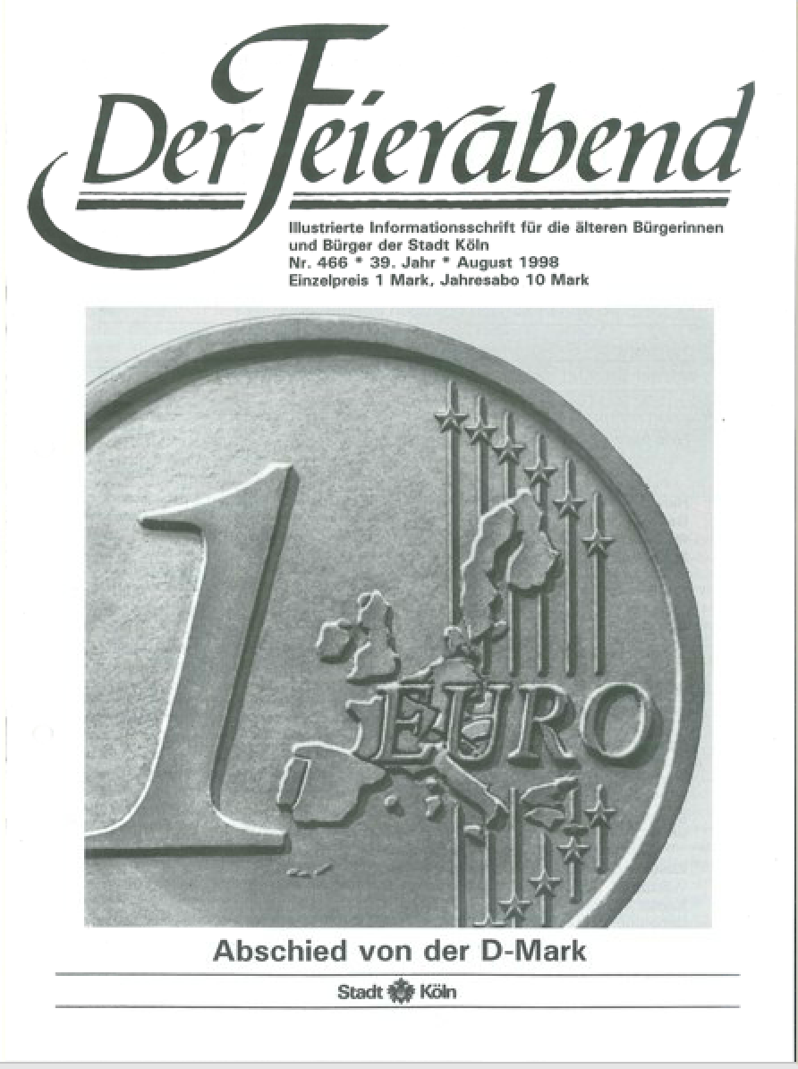 In den 1990er Jahren weitete das Magazin den Blick und griff gesamtgesellschaftliche Themen auf, bei- spielsweise die ambulante Pflege oder die Euro-Ein- führung 1998. Die Redaktion berichtete auch ausführlich über den Euro- und den Weltwirt- schaftsgipfel, die 1999 in Köln stattfanden. In diesen Jahren wandelte sich das Bild der „Alten“ in der Öffentlichkeit. Und das Magazin mit ihm: Schon 1987 trat es moderner gestaltet auf. Seit 1998 kam es im Vierfarbdruck daher. Auch die Werbung entdeckte die über 60-Jährigen als Zielgruppe, zumal sie gesundheitlich und finanziell vielfach besser dastanden als frühere Generationen. Gleichwohl hielten sich gewisse Klischees noch lange: Entweder waren die Senioren topfit (und eben nicht alt) oder „verkalkt“. Solche Fragen rund um Altersdiskriminierung griff das Blatt ebenfalls immer wieder auf.