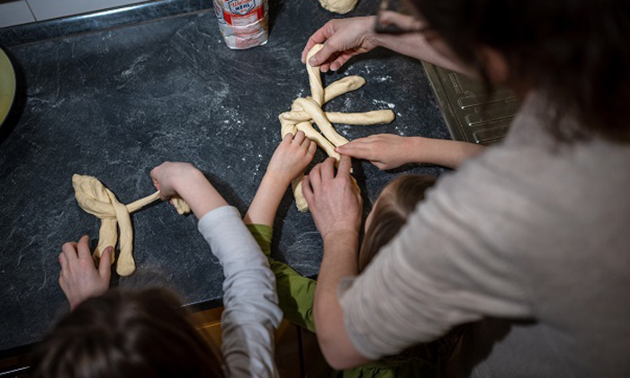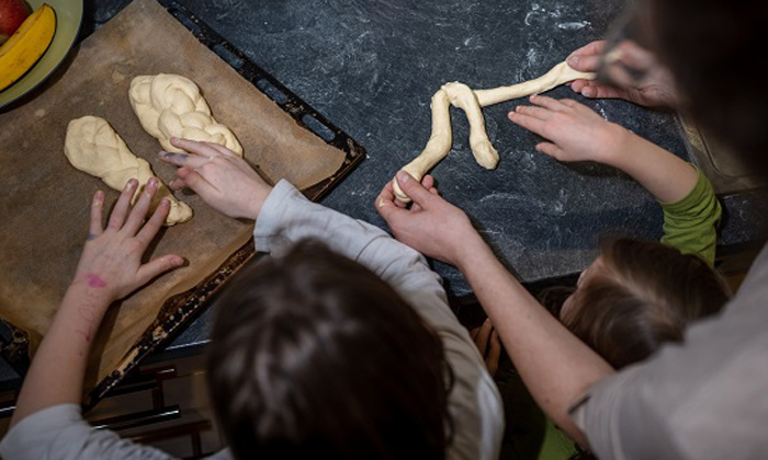 Schürze an, Hände gewaschen und los geht’s: Noa R. flechtet Hefezöpfe. „Sie heißen Challot und gehören für uns zum Schabbat. Ich mag es, wenn es im ganzen Haus danach duftet“, erklärt die vierfache Mutter. Der Duft läutet im Reihenhaus der Familie den wöchentlichen Ruhe- und Feiertag ein. Er dauert von Sonnenuntergang am Freitag bis zum Sonnenuntergang am Samstag.