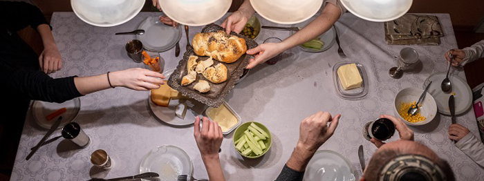 Das Brot (Challot) wird erst gebrochen und verteilt, wenn der Segensspruch über den Wein gesprochen wurde. Bis dahin wird es mit einem Tuch zugedeckt. Foto: Costa Belibasakis