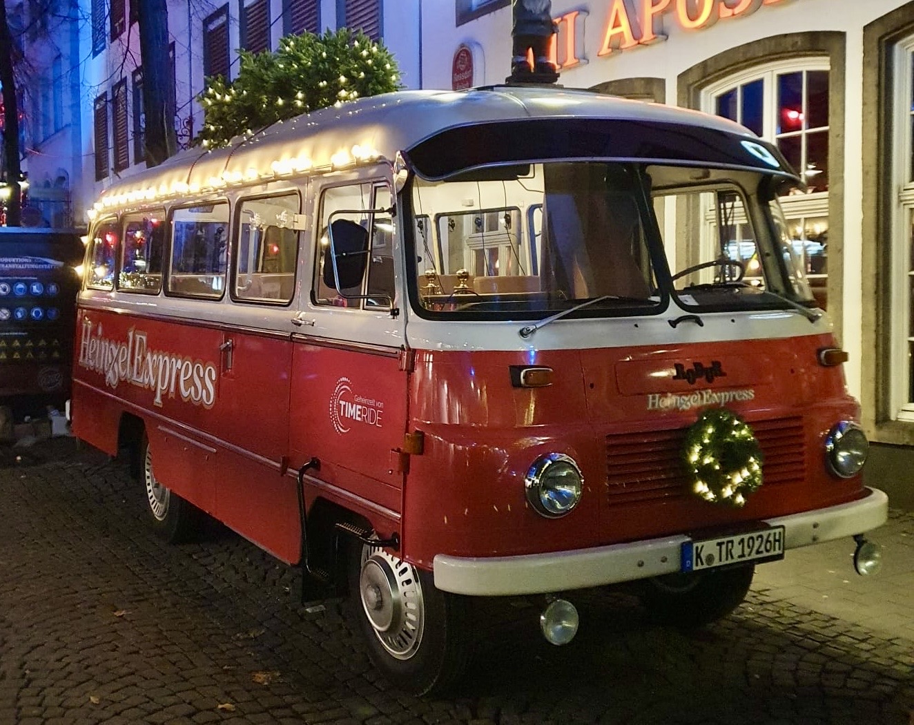 Im liebevoll restaurierten Oldtimer-Bus erleben große und kleine Gäste ein rund zehnminütiges Virtual-Reality-Abenteuer, das sie mitten hineinführt in die sagenumwobene Unterwelt der fleißigen Heinzel. In 360°-Szenen erkunden die Fahrgäste historische Handwerksstätten des 19. Jahrhunderts – vom Bäcker über den Steinmetz bis zum Zimmermann – und begegnen dabei den charmanten Wichteln, die einst das nächtliche Leben Kölns prägten. Das Erlebnis basiert auf dem bekannten Gedicht von August Kopisch aus dem Jahr 1836 und wurde von TimeRide mit viel Liebe zum Detail weitergedacht. Dank modernster VR-Technologie, stimmungsvoller Musik und der bekannten TimeRide-Figur Pitter, dem kölschen Straßenbahnfahrer, erhält die Legende ein überraschendes neues Ende. Alle zehn Minuten startet eine neue virtuelle Fahrt für bis zu 16 Personen